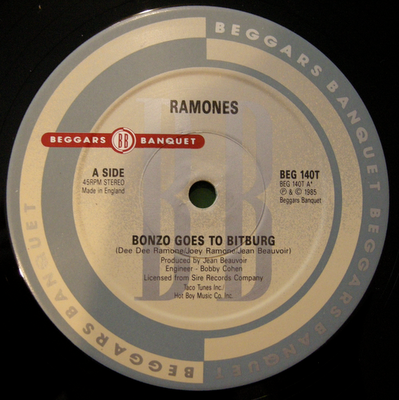 "I never wanted the Ramones to be about politics", Johnny Ramone says in his book "Commando". But in 1985 they were. The song Bonzo Goes to Bitburg is about the former U.S. president Ronald Reagan and his trip to West Germany the same year. Reagan was criticized at home because he planned to visit a military cemetery in Bitburg where also 49 members of the Waffen-SS was buried. Criticism before the visit came from several directions, Jewish groups, war veterans and the Congress.
